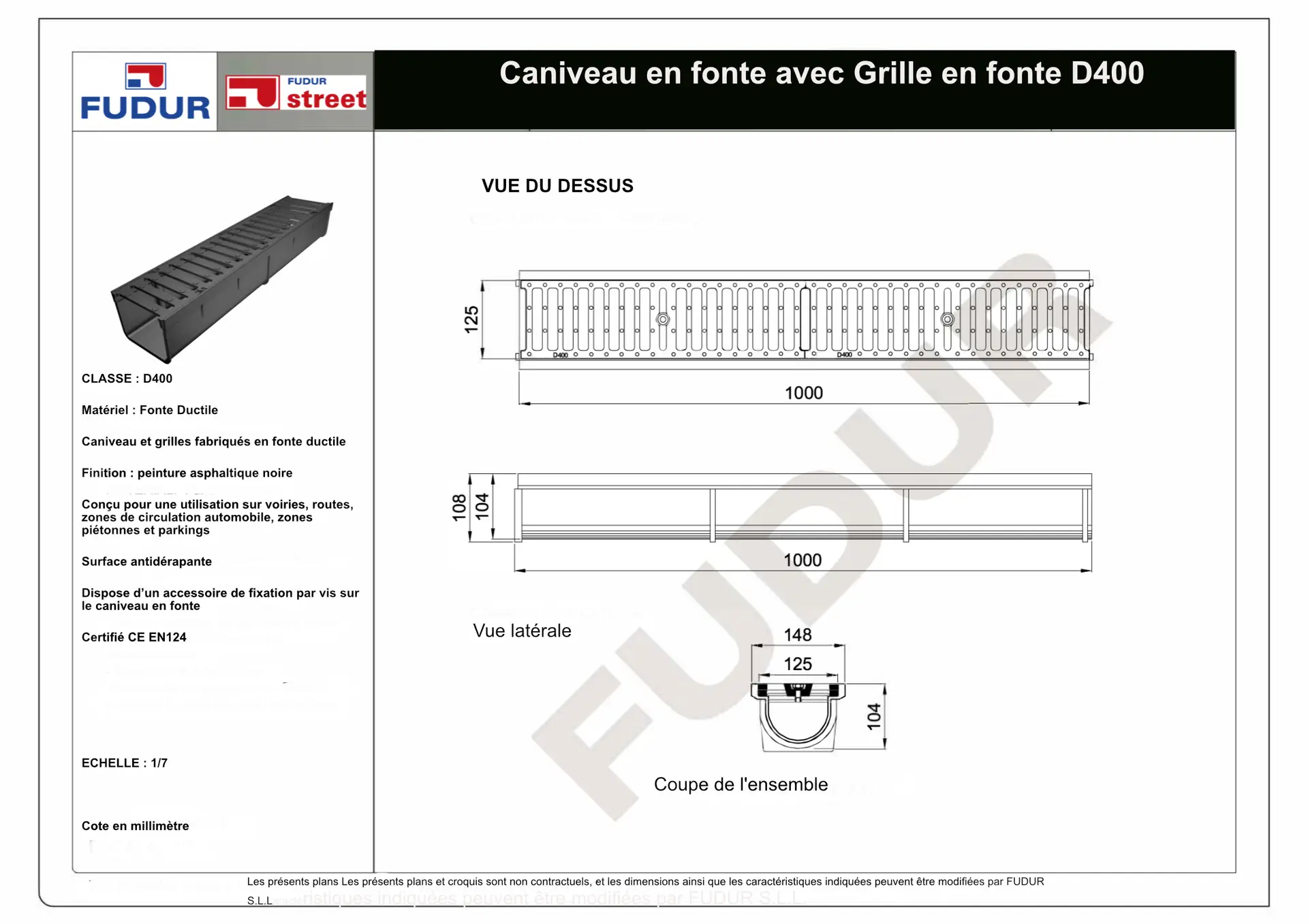 Le caniveau en fonte D400 est conçu pour les zones soumises à un trafic intense : voirie, parkings poids lourds, accès industriels ou plateformes logistiques. Fabriqué selon la norme EN 1433 – Classe D400, il supporte le passage de véhicules jusqu’à 40 tonnes, garantissant sécurité et durabilité même en conditions extrêmes.