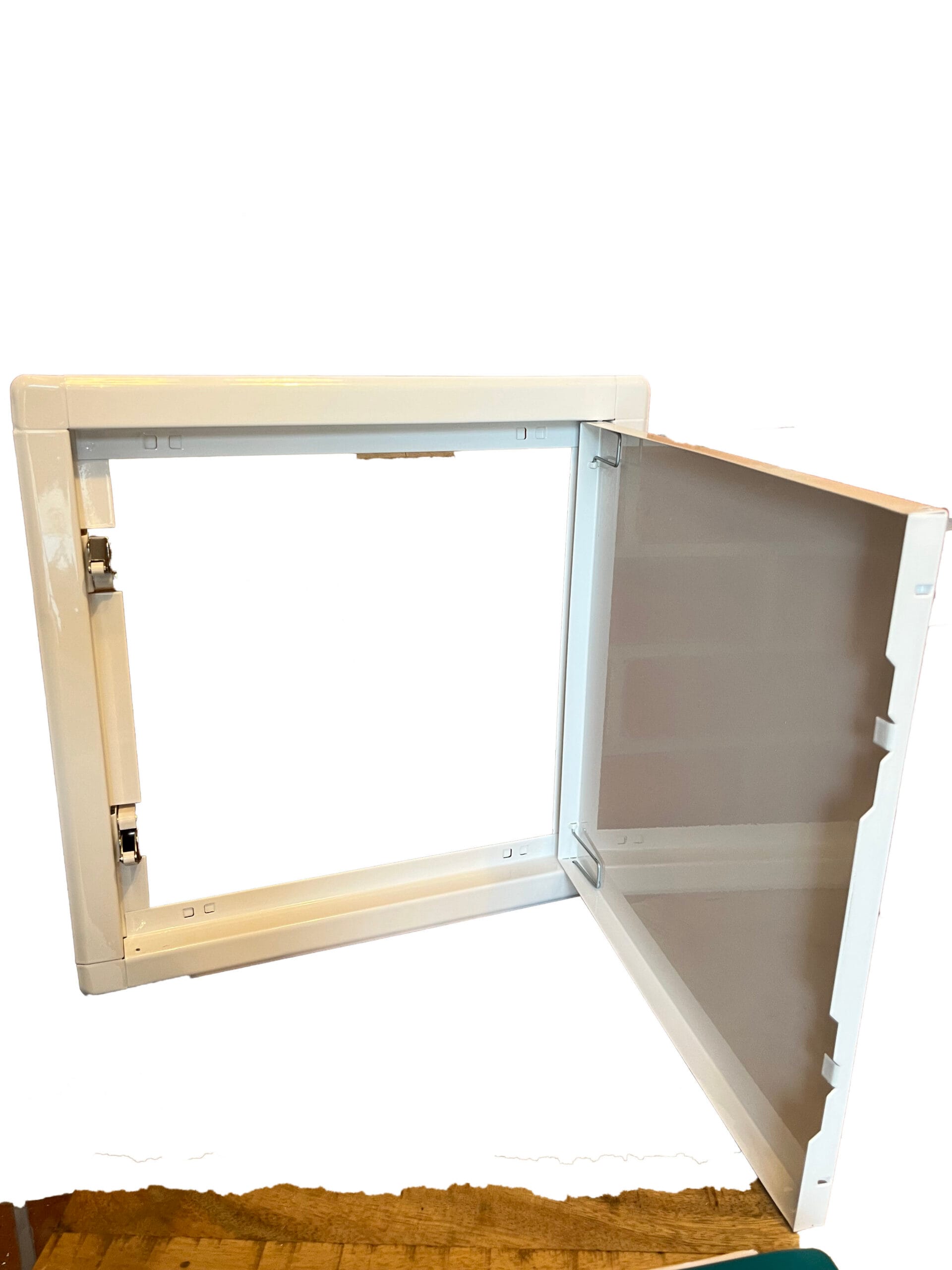 La trappe de visite  en acier à fermeture à ressort pour mur et plafond. Fabriquée en acier galvanisé peint en blanc RAL 9016. Livraison partout en France.