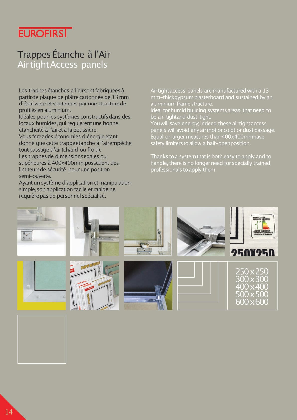 Grâce à son joint d’étanchéité périphérique et à sa conception précise, cette trappe atteint une perméabilité à l’air de classe 4 (testée selon DIN EN 14351-1) et une isolation acoustique Rw (C;Ctr) = 28 dB / 12,5 mm (selon ISO 10140-2 et ISO 717-1).